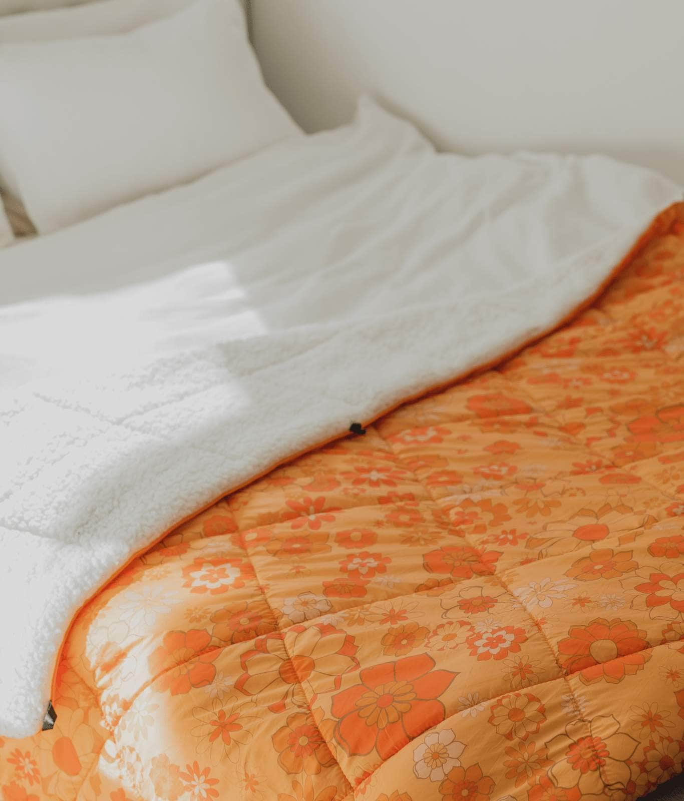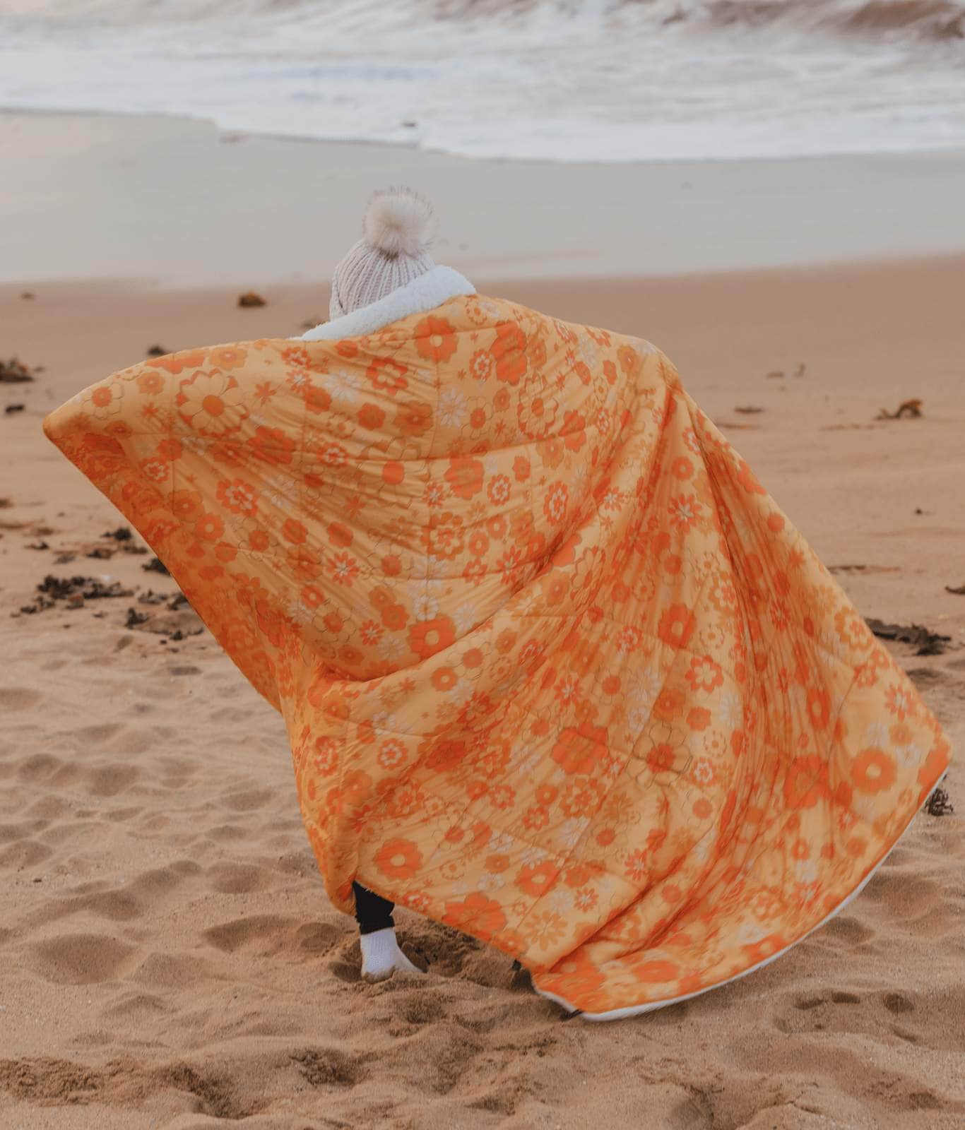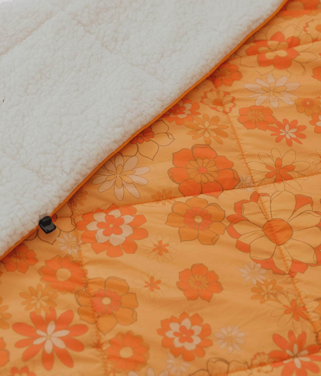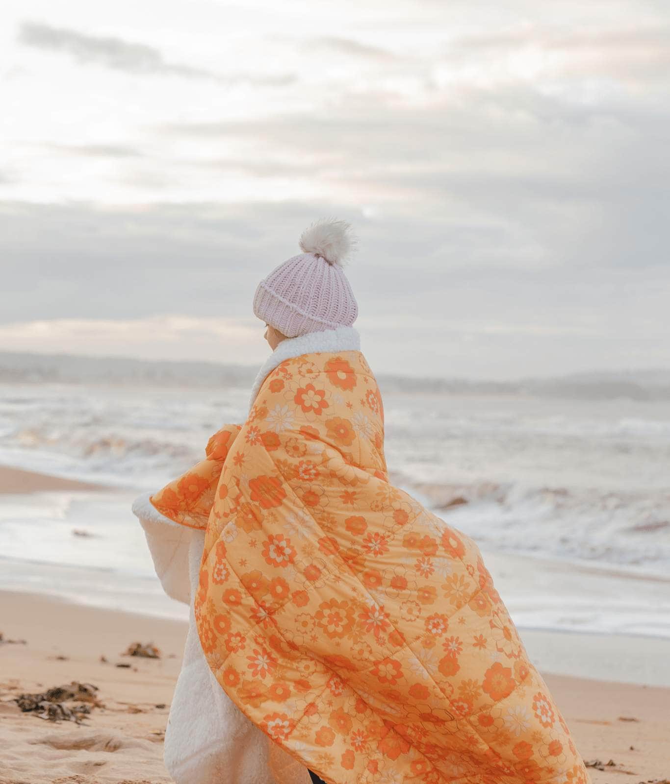 The Sunny blanket is a soft and fluffy sherpa rug blanket and the ultimate winter accessory. The retro style Sunny is a wonderfully warm large outdoor blanket. It’s the perfect large outdoor blanket to snuggle up in on a cold winter’s evening. Designed by the team here at Wilder the Label HQ in Australia, this cotton picnic blanket combines shades of orange and brown, in a funky retro floral design.