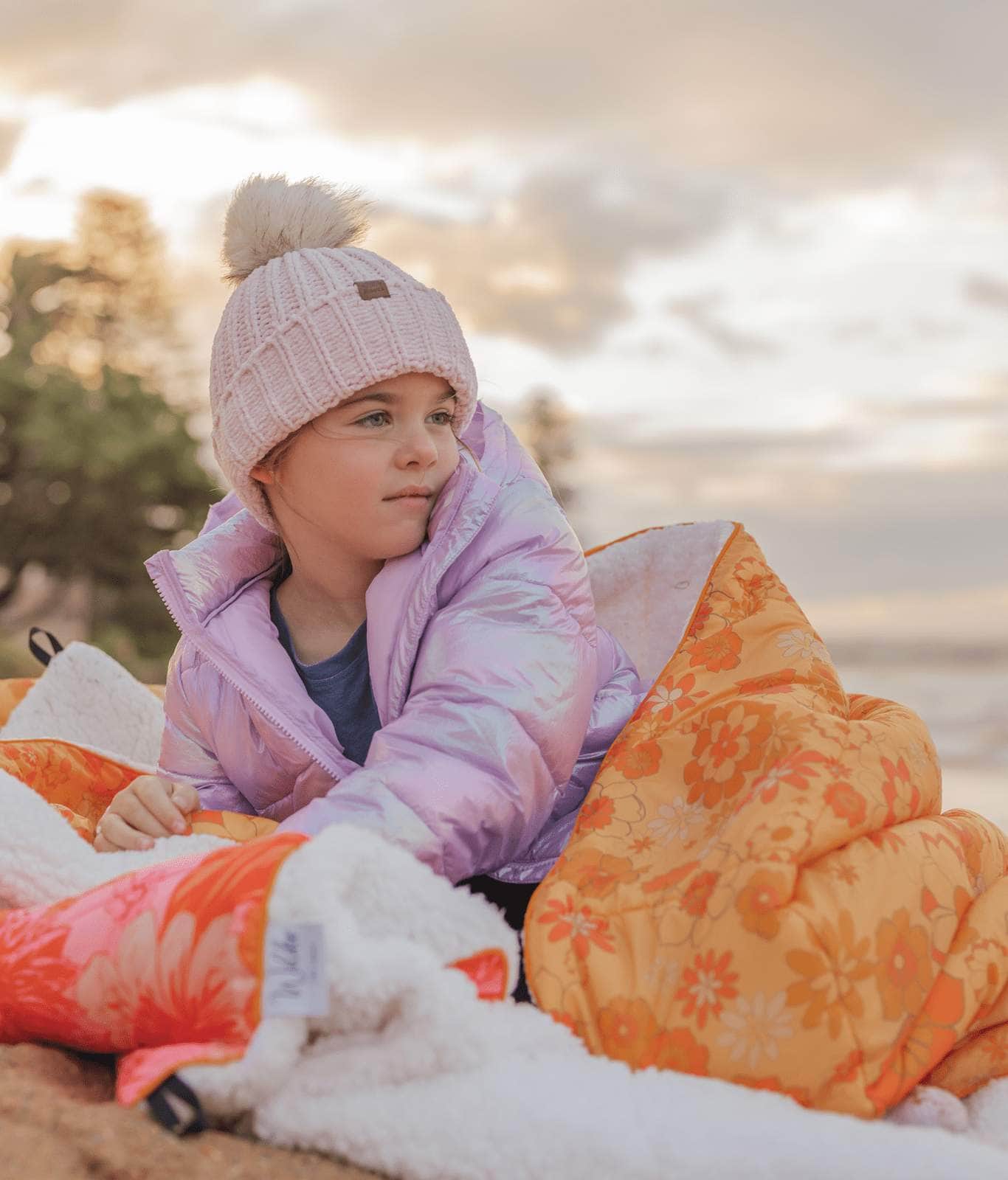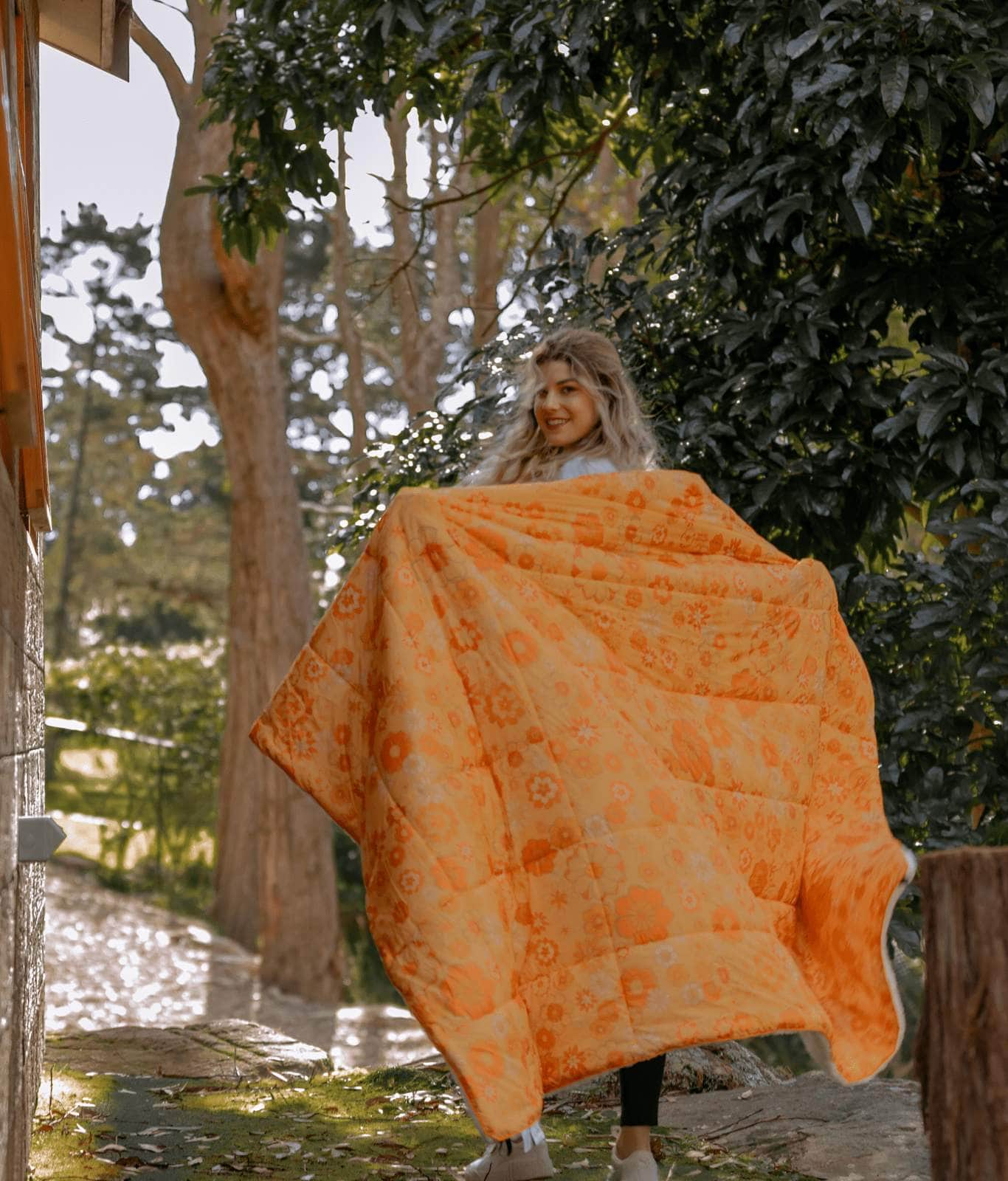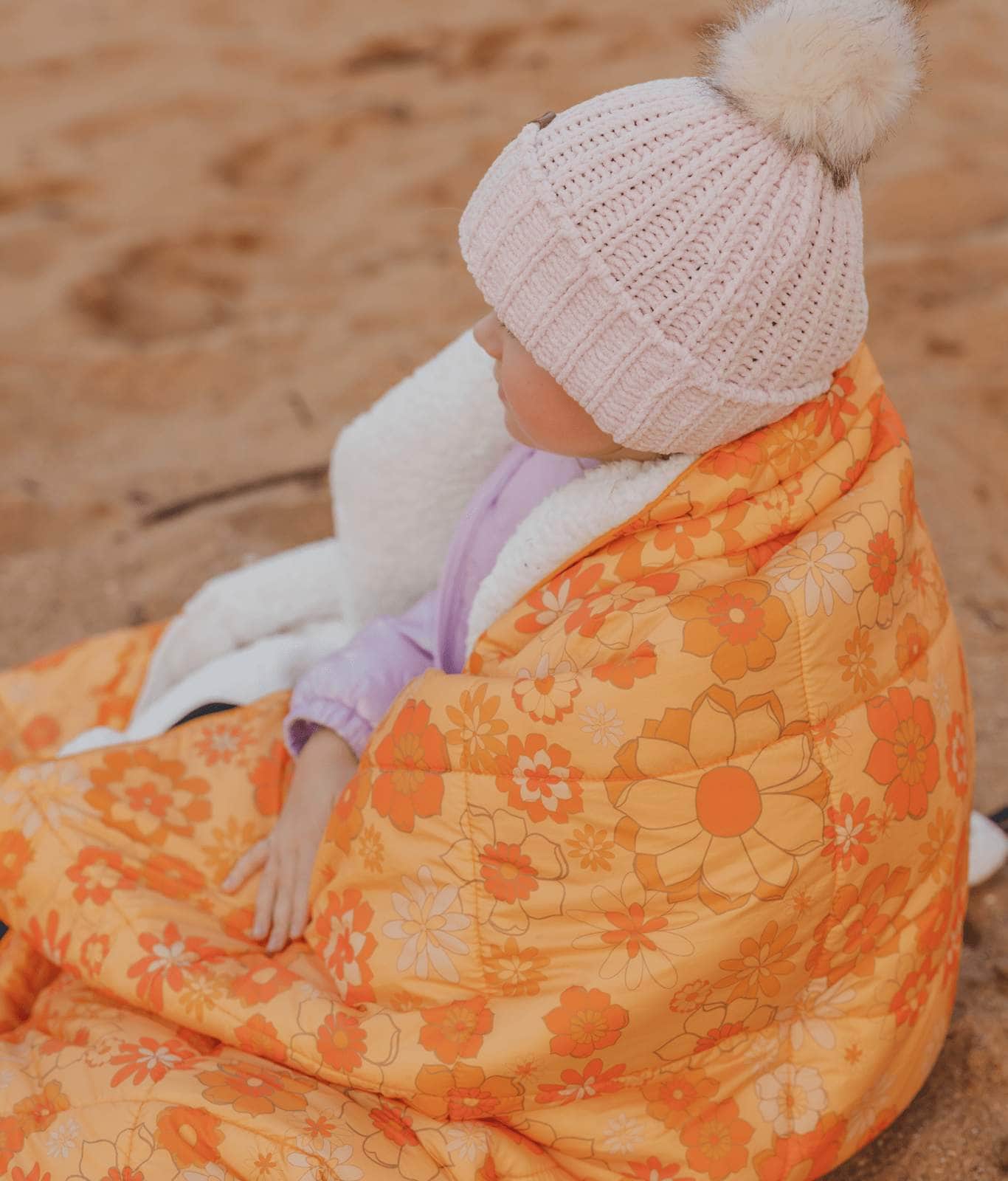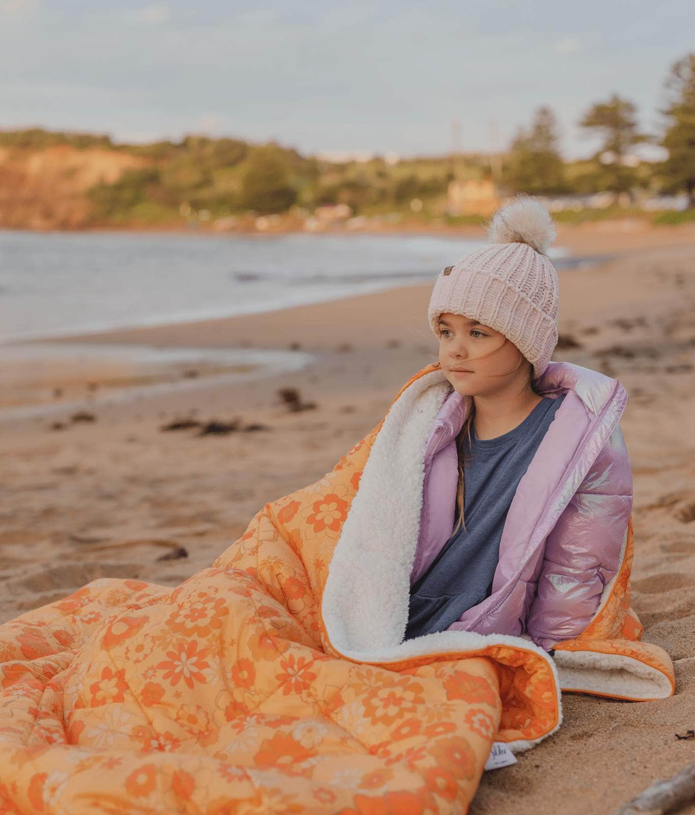 The Sunny blanket is a soft and fluffy sherpa rug blanket and the ultimate winter accessory. The retro style Sunny is a wonderfully warm large outdoor blanket. It’s the perfect large outdoor blanket to snuggle up in on a cold winter’s evening. Designed by the team here at Wilder the Label HQ in Australia, this cotton picnic blanket combines shades of orange and brown, in a funky retro floral design.